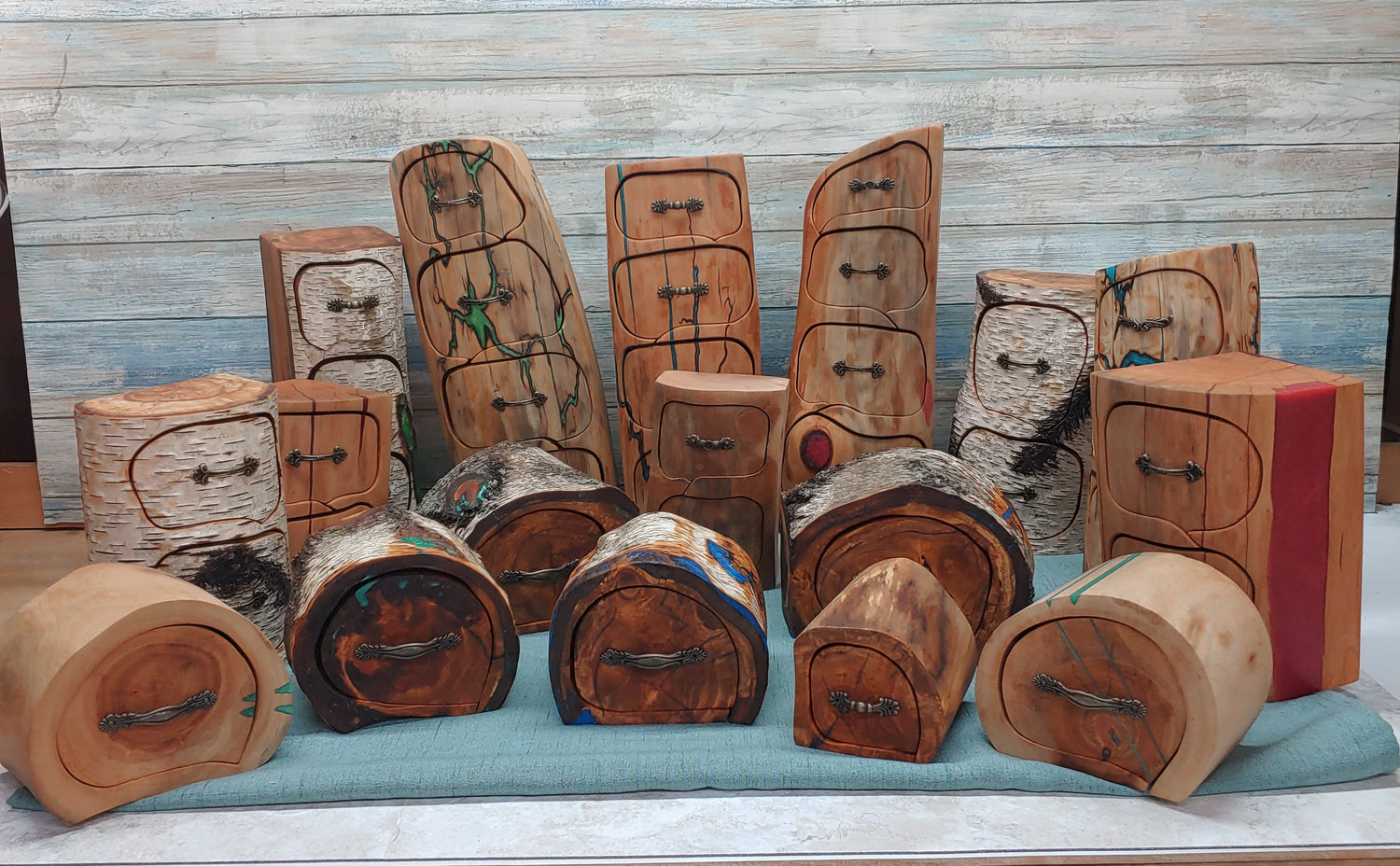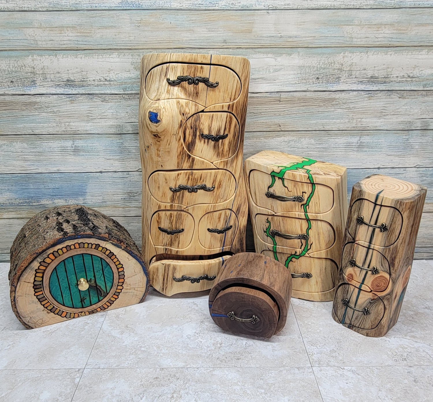 I love bringing nature into the home. Reclaiming a fallen tree, breathing new life into it, and giving it the opportunity to be a source of natural beauty in a person’s home. I am charmed by the natural beauty and whimsy of wood and I try to keep the organic nature of it in my work as much as I can. I go out into the woods and find downed trees to harvest for logs. The size and quality of the log determines what the shape of that particular box will be. Not only are they charming but they are functional. Perfect for storing treasure, valuables, or keepsakes. All of my log drawer boxes are one of a kind pieces because no two pieces of wood are ever the same.